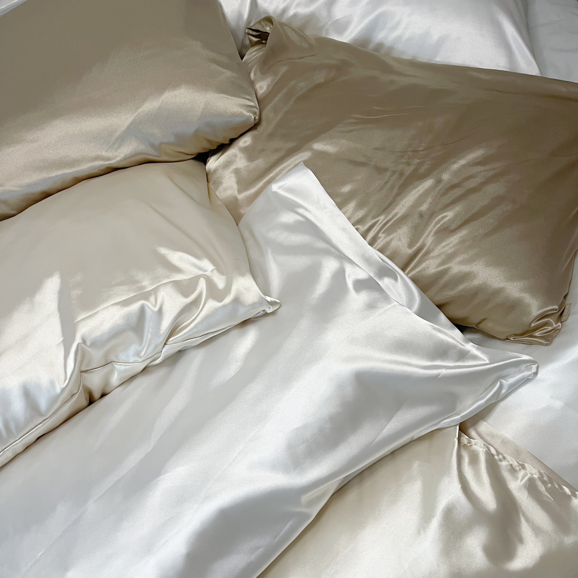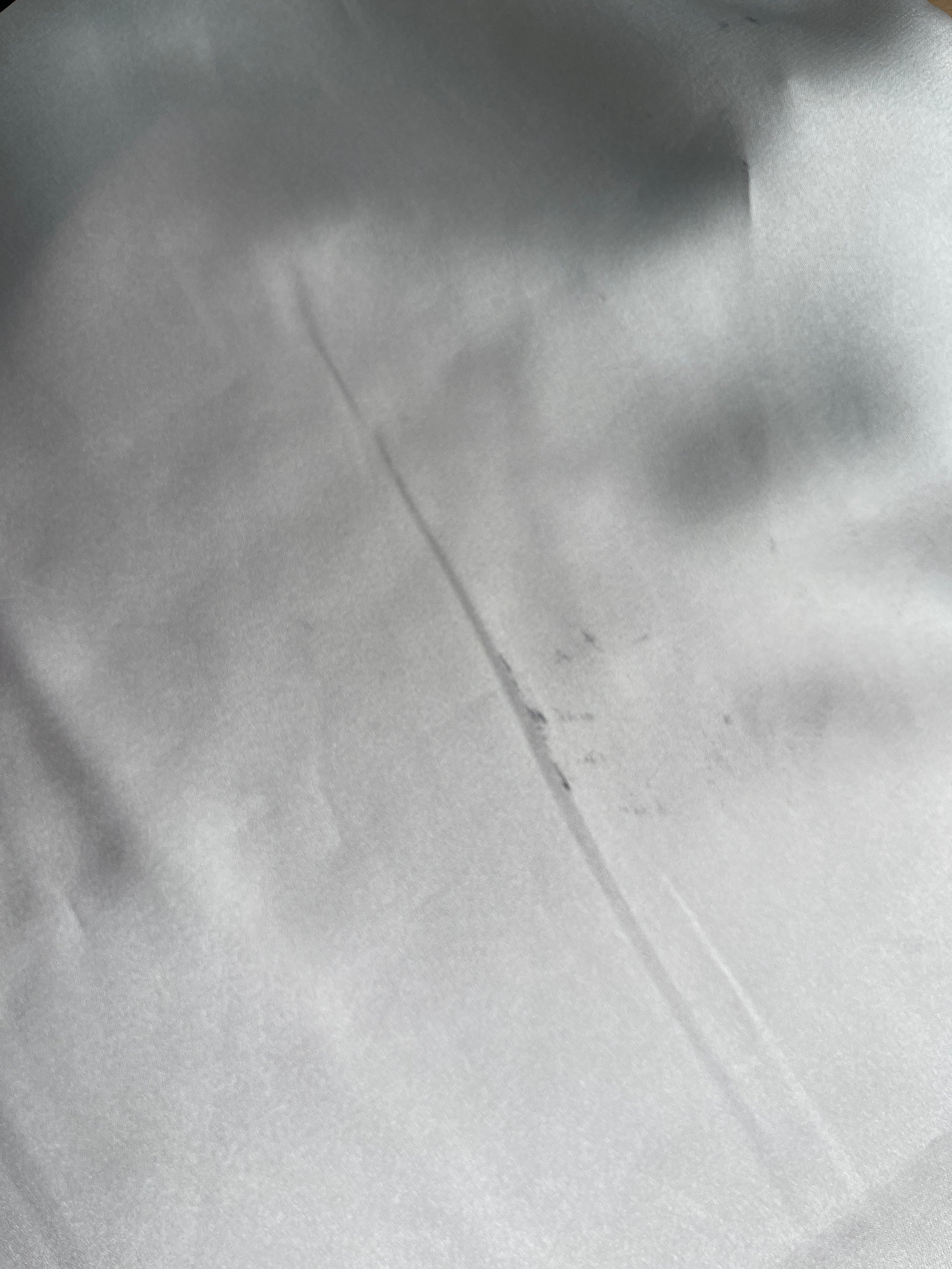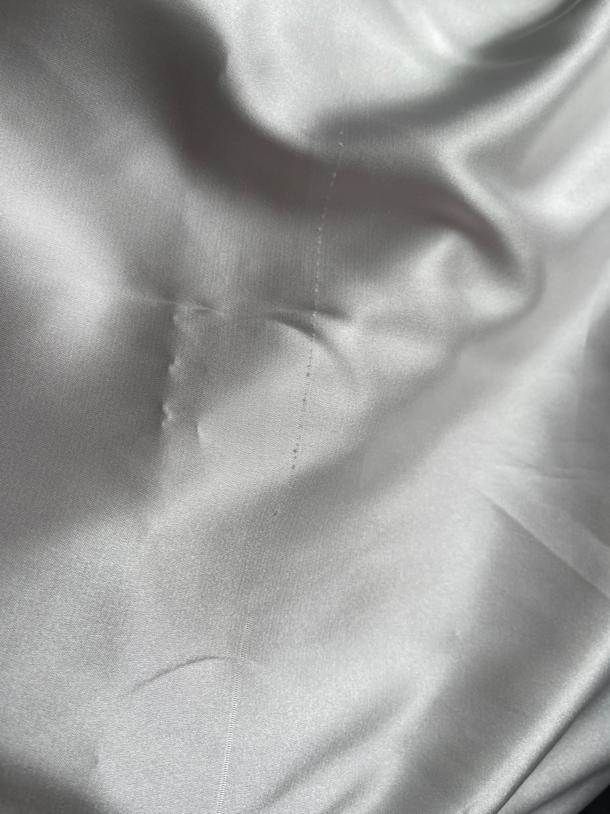 fronha de cetim branca-pérola nas medidas 50x70 com defeito na malha do tecido (visível na imagem).