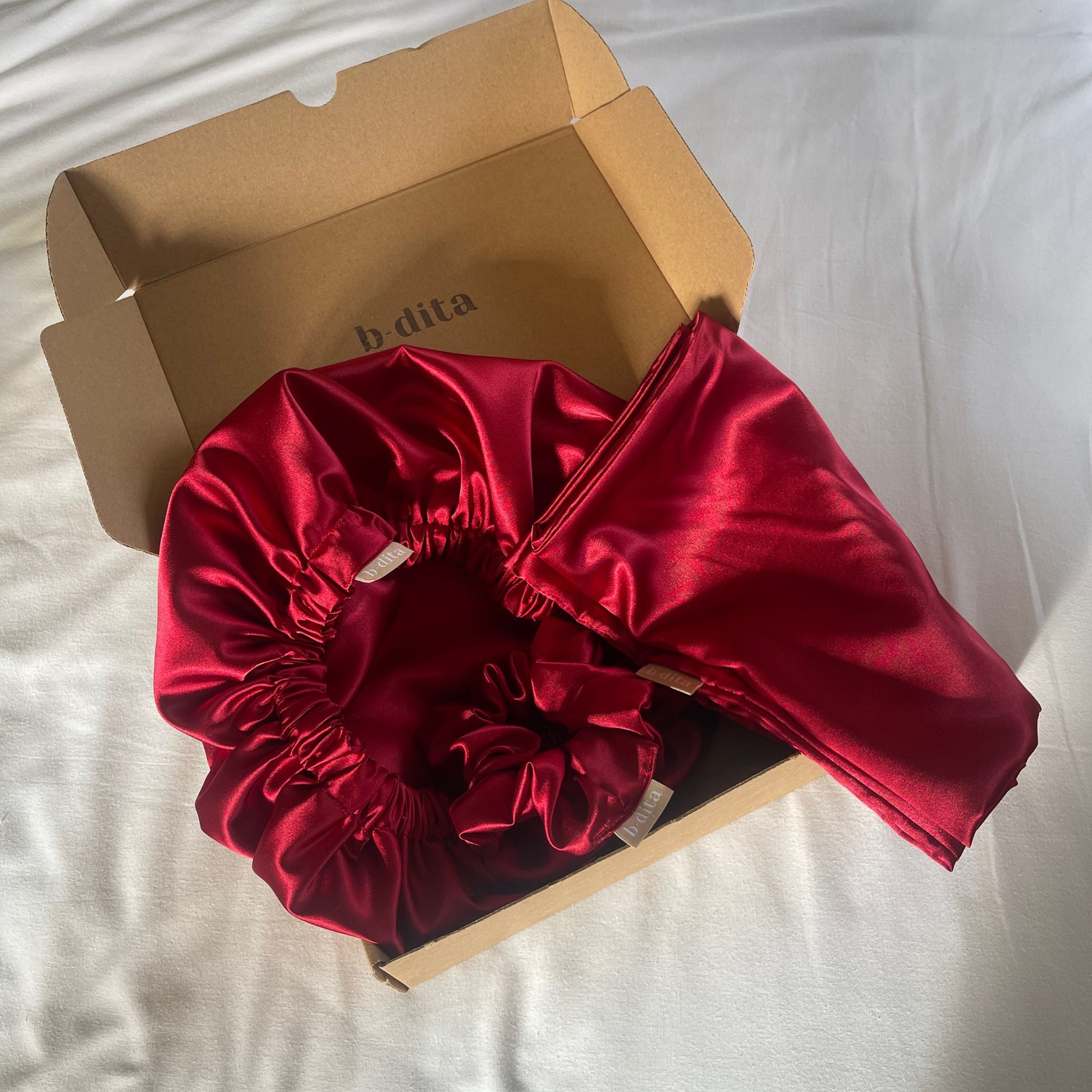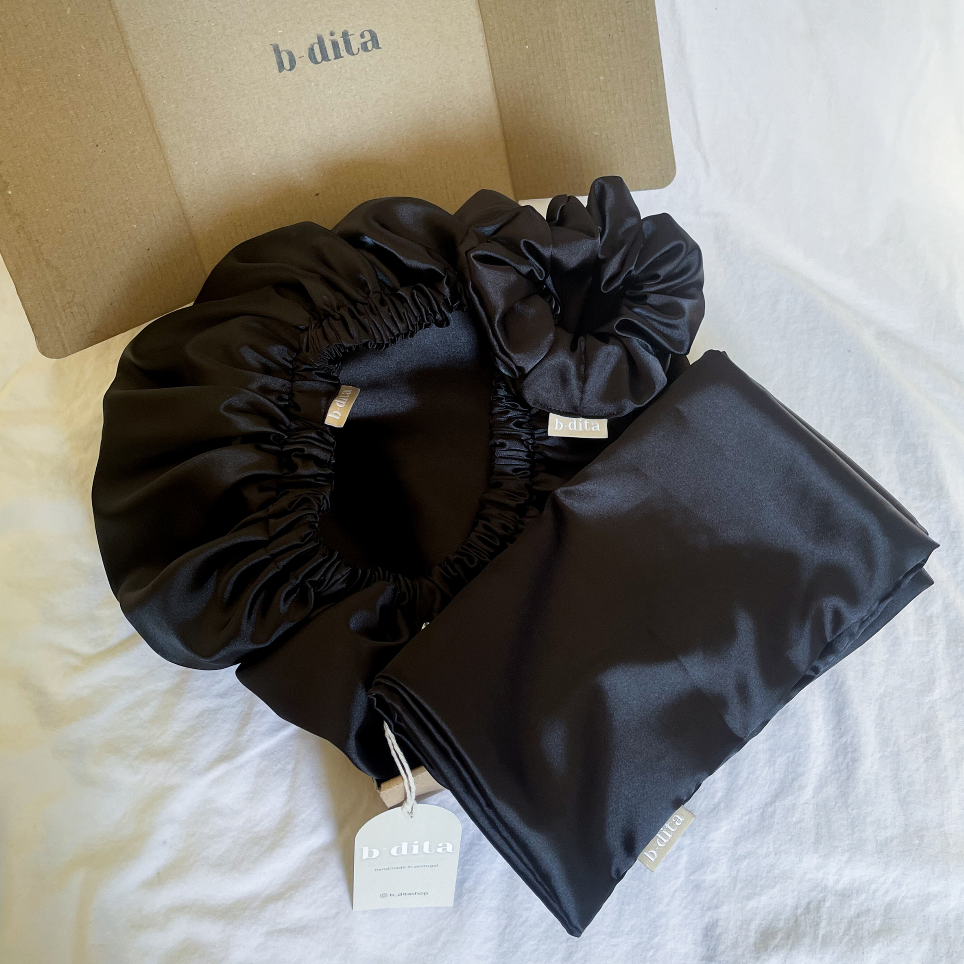 Este kit inclui uma fronha standard, uma touca de 55cm e um scrunchie regular de apenas uma cor.
